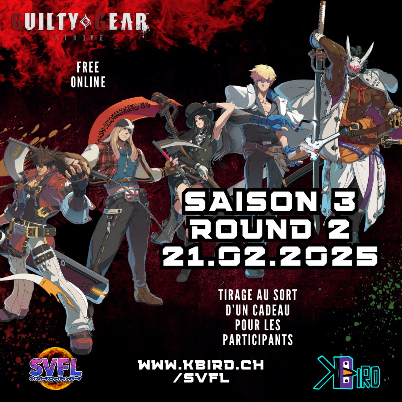 On continue avec Guilty Gear et son round 3 qui aura lieu le 21 février prochain, n'oubliez pas de vous inscrire sur https://challonge.com/SVFLGGSTR6